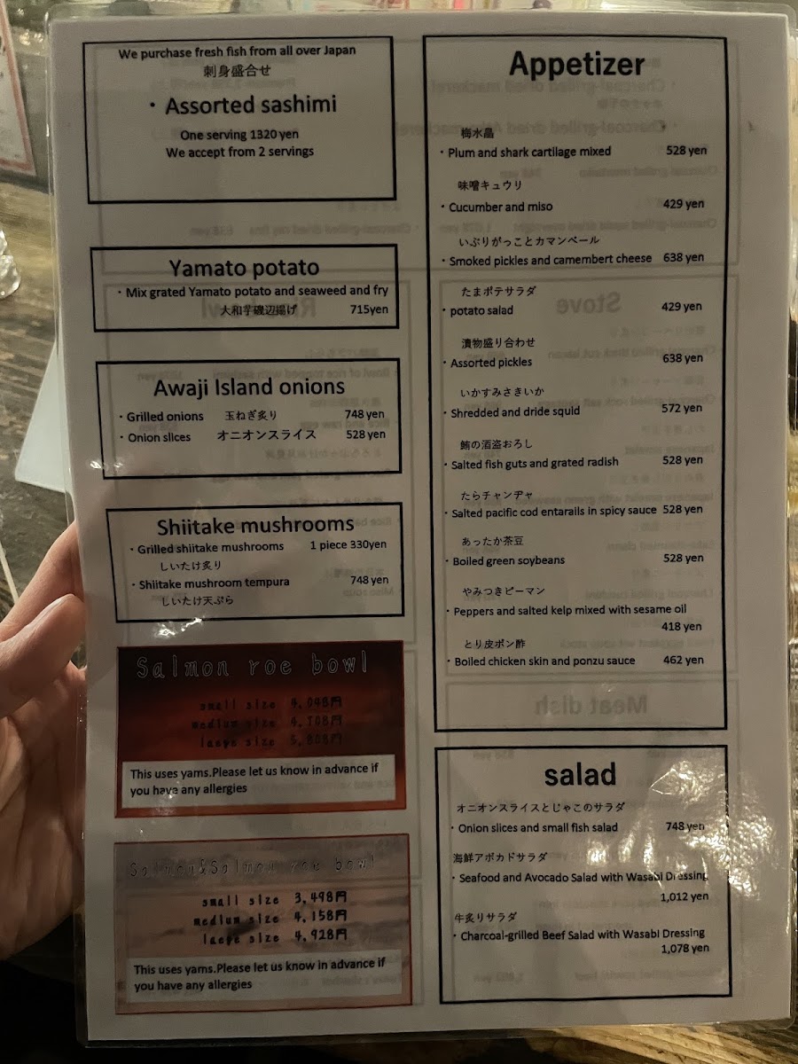 The ambience is vibrant and inviting, making it a favorite among locals. Guests can enjoy hearty dishes like the grilled cod fish, perfectly charred and juicy, and the mushroom clear soup, rich in umami flavors. The service here is exceptional, with friendly staff dedicated to ensuring your experience is memorable, often using creative ways to communicate with guests. Whether you're dining alone or with friends, the lively atmosphere mixed with delightful dishes promises an unforgettable outing. Iroriya Higashiginzaten is truly a must-visit for anyone craving an authentic culinary adventure in Japan.